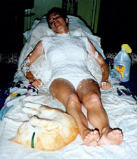 We agree to go for a sculpture that encompasses from her buttocks to her neck. Plaster strips are applied in a form similar to the manner used for setting broken bones using cheesecloth impregnated with plaster of Paris. After about thirty minutes the plaster has hardened to a point where the form can be removed intact. This creates a negative mold where later, when the plaster is fully set, strips of clay are carefully placed to recreate Marys torso. Marys work is done where mine has just begun.